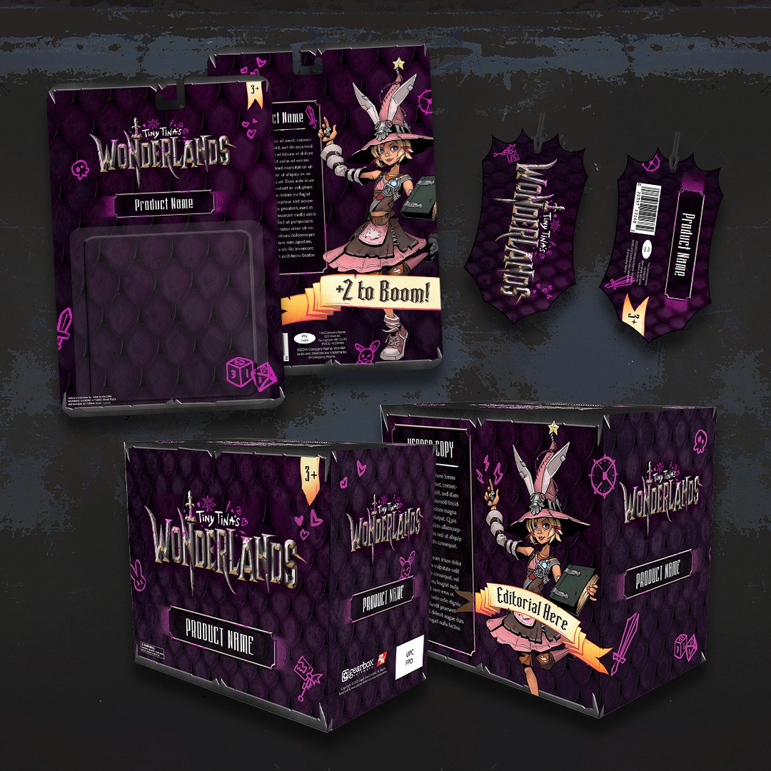 After developing the Licensing and Packaging Style Guides for the hit gaming franchise Borderlands, our friends at Gearbox Software asked us to help on the guides for their upcoming Borderlands spinoff Tina Tina's Wonderlands.